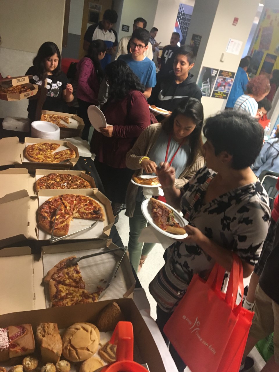 Organizaciones como Questa Foundation estuvieron presentes explicando cómo obtener préstamos perdonables de hasta un 75% después de graduarse por medio de beneficios otorgados por dicha organización. También hubo un panel de estudiantes universitarios interactuando sobre los pros y cons de estudiar o asistir a la universidad. Escuchamos historias de jóvenes becados y también historias de jóvenes que por ser nativos de otros países o beneficiados por el ex programa DACA tienen que pagarse su educación de su propia bolsa. En fin hubo de todo un poco en relación a la educación superior y al final todos se fueron felices y con la ‘panza llena’ por la generosa contribución de nuestros amigos de PIZZA HUT y de otros patrocinadores. Una vez más damos las gracias a los participantes, a los patrocinadores, voluntarios…pero muy en especial gracias a los padres que en verdad les importa la educación de sus hijos y se hicieron presentes. Por este medio les invitamos a nuestro próximo evento a celebrarse en el mes de marzo del 2018. En marzo del 2018 es cuando introducimos a los padres y estudiantes al programa de 21st Century Scholars que paga la universidad a sus hijos por cuatro años. Una vez más gracias por su apoyo y estén pendientes para la próxima actividad.