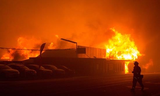 Bomberos intentan apagar el fuego en un edificio el jueves 8 de noviembre de 2018, en el condado de Butte, California (EE. UU.). Se ordenó a las comunidades cercanas de Pulga, Paradise y Concow que evacuen la zona. EFE/Archivo