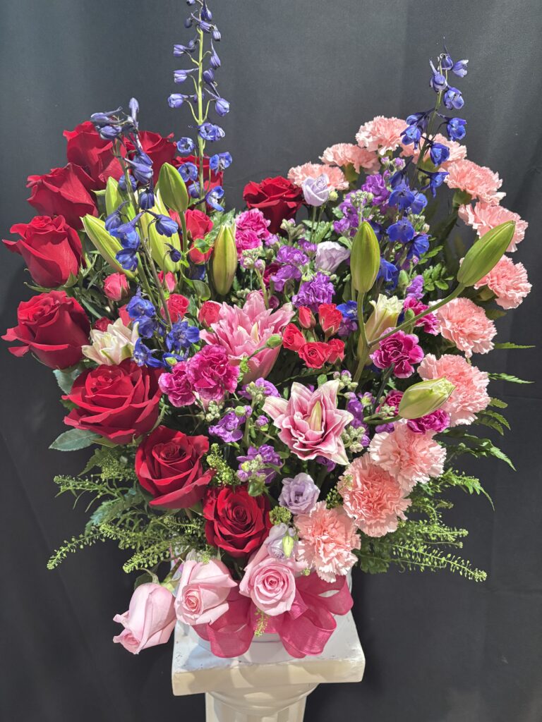 Reyna ofrece una amplia variedad de arreglos florales para todo tipo de ocasiones: bodas, quinceañeras, Día de las Madres y eventos especiales. Además, Reyna también a decidido innovar su negocio cada vez más y ahora ofrece a sus clientes bases en forma de corazón para pedidos especiales como: Quieres ser mi novia? o Quieres casarte conmigo? Por lo que a nuestros lectores les brindara un descuento especial por este arreglo floral.